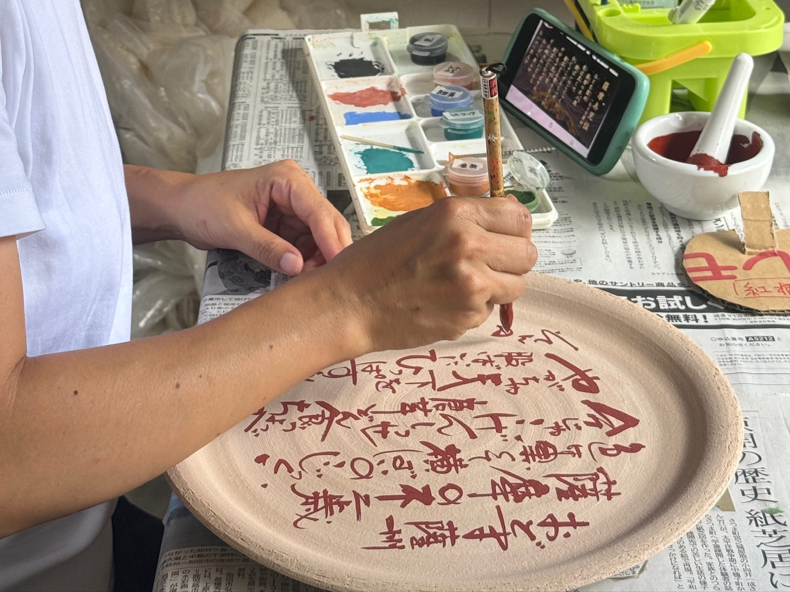 天文館店のガラス面に桜島を描き、九州国立博物館のマークもデザインした書家・西尾真紀が