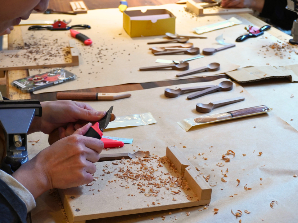 スプーンづくりに挑戦するワークショップ。