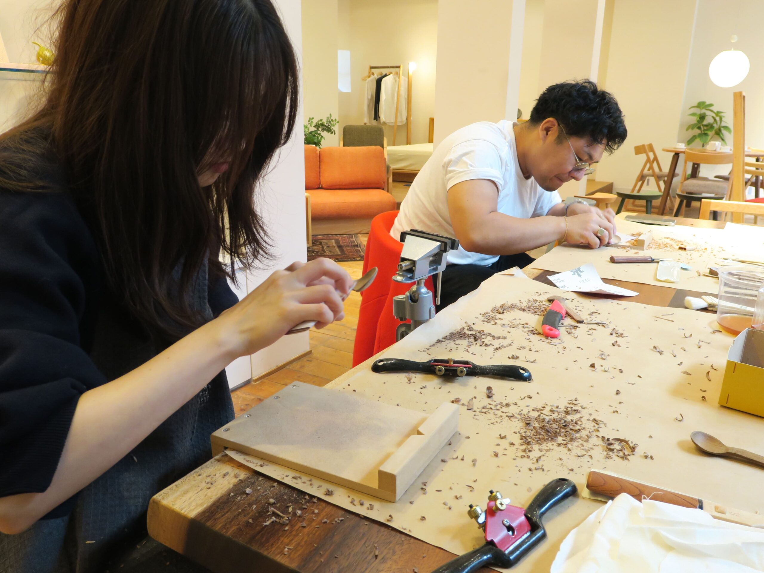 若葉家具さんが実際に家具製作で使用している木材を削って